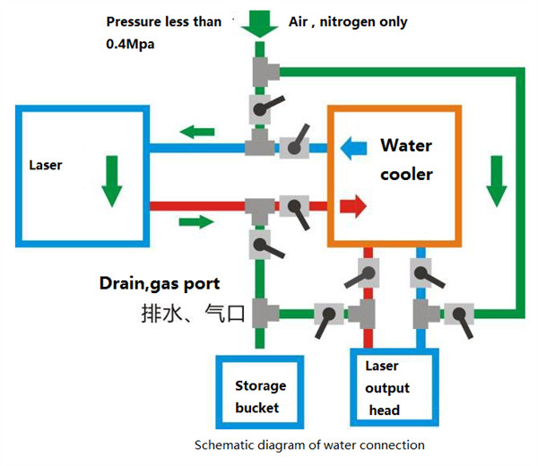 Yn y tywydd oer eithafol yn y gaeaf, rhaid glanhau'r holl ddŵr oeri yn y laser, pen allbwn laser, pen prosesu, ac oerydd dŵr i amddiffyn y set gyfan o bibellau oeri dŵr a dyfeisiau cysylltiedig yn effeithiol.